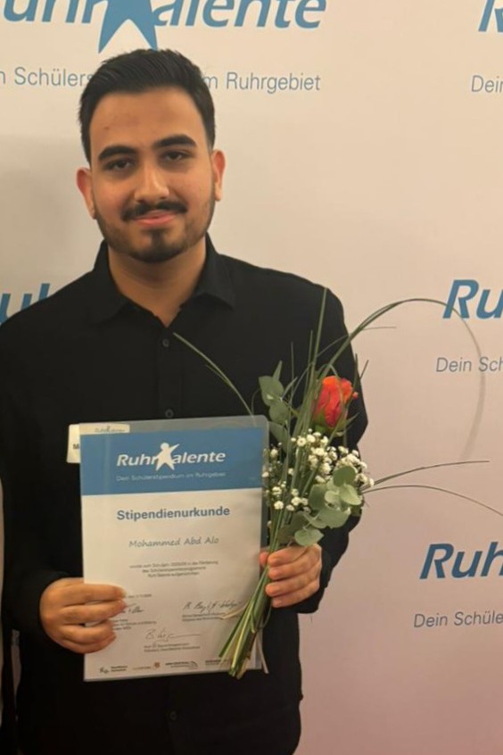 Wir freuen uns sehr, mitteilen zu können, dass unser Schüler Mohammed Abd Alo sich erfolgreich im Auswahlverfahren des Stipendienprogramms RuhrTalente gegen zahlreiche Bewerberinnen und Bewerber aus dem gesamten Ruhrgebiet durchsetzen konnte.