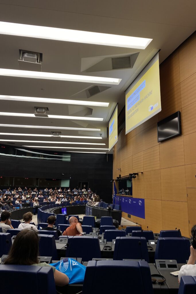 Die Atmosphäre im EYE-Village war von Vielfalt und Austausch geprägt – eine Mischung aus Streetfood, Bühnenmusik und unzähligen Länderfahnen. Die Jugendlichen nutzten die Chance für Gespräche über europäische Bildungssysteme, tauschten Meinungen zur EU-Unabhängigkeit in der Landwirtschaft aus und diskutierten Fragen zur Solidarität und Gerechtigkeit zwischen den Generationen. Besonders bewegend waren die politischen Höhepunkte im Plenarsaal. Im Zentrum stand die Rede von Dasha Navalnaya, die leidenschaftlich über Demokratie, Menschenrechte und Meinungsfreiheit sprach und eine intensive Plenumsdiskussion mit Politikern auslöste.