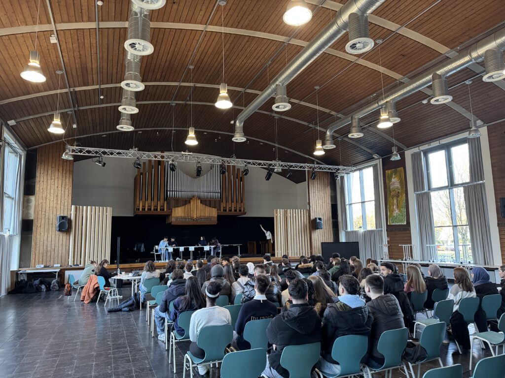 Bundesweit findet Jugend debattiert an rund 1.400 Schulen statt, wir sind eine davon. Heute ging es daher mal wieder hoch her, dieses Mal auf Schulebene, denn der Schulsieger in der Einführungsphase wurde ermittelt, nachdem in den drei Kursen Sozialwissenschaften bereits die Kurssieger:innen feststanden. Unsere Koordinatorin Simone Schramm-Firin begrüßte den Jahrgang, bevor debattiert wurde. Eine der Fragen lautete nun: „Soll das Wahlalter zur Bundestagswahl auf sieben Jahre gesenkt werden?“ Wie Sie sich sicher vorstellen können, redeten sich die Debattant:innen heiß: „Kinder sollen Kinder sein dürfen und eher Spielzeit haben, anstatt sich über Politik zu informieren!“ – „Viele wissen auch im Alter von 18 Jahren noch nicht, wen sie wählen sollen!“